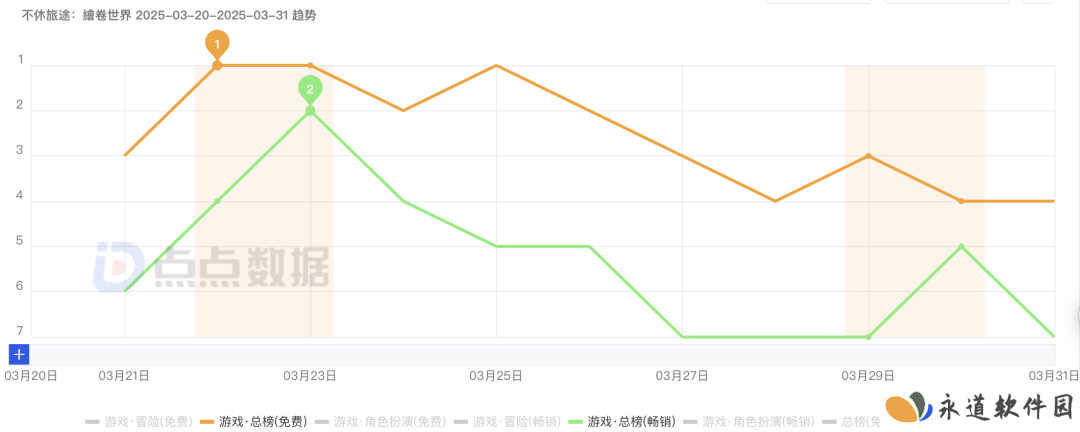 据相关数据显示,《不休旅途:绘卷世界》自3月21日上线以来,仅用9天时间便实现了3700万元的收入。在台湾市场的iOS畅销榜中,该游戏更是持续占据前列,表现十分抢眼。这一成绩不仅验证了4399在游戏研发方面的实力,也进一步巩固了其在港澳台地区的市场地位。