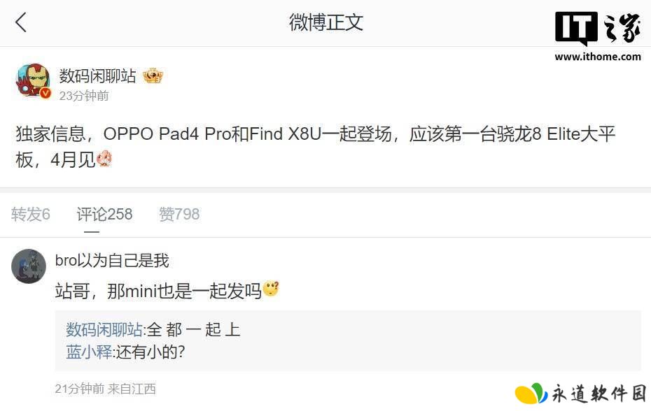 近期,科技圈内传出了一则引人注目的消息,知名数码博主@数码闲聊站透露,OPPO即将在4月推出两款备受期待的新品——OPPO Pad4 Pro平板电脑与OPPO Find X8 Ultra智能手机。据称,OPPO Pad4 Pro或将开创先河,成为首款搭载骁龙8至尊版处理器的大尺寸平板电脑。