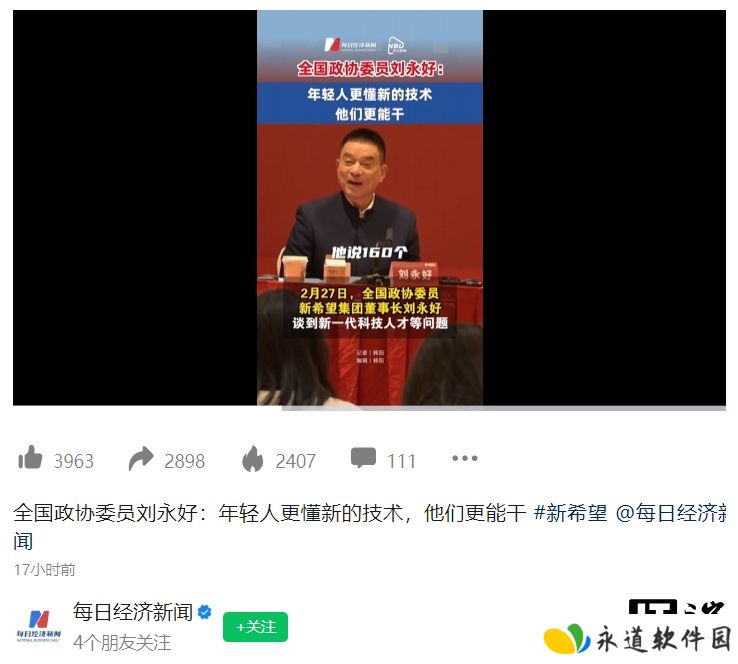 本站 2 月 28 日消息,2025 全国两会召开在即。2 月 27 日,全国政协委员、新希望集团董事长刘永好两会媒体沟通会在北京召开。综合每日经济新闻、北京商报报道,刘永好在媒体沟通会透露了与 De