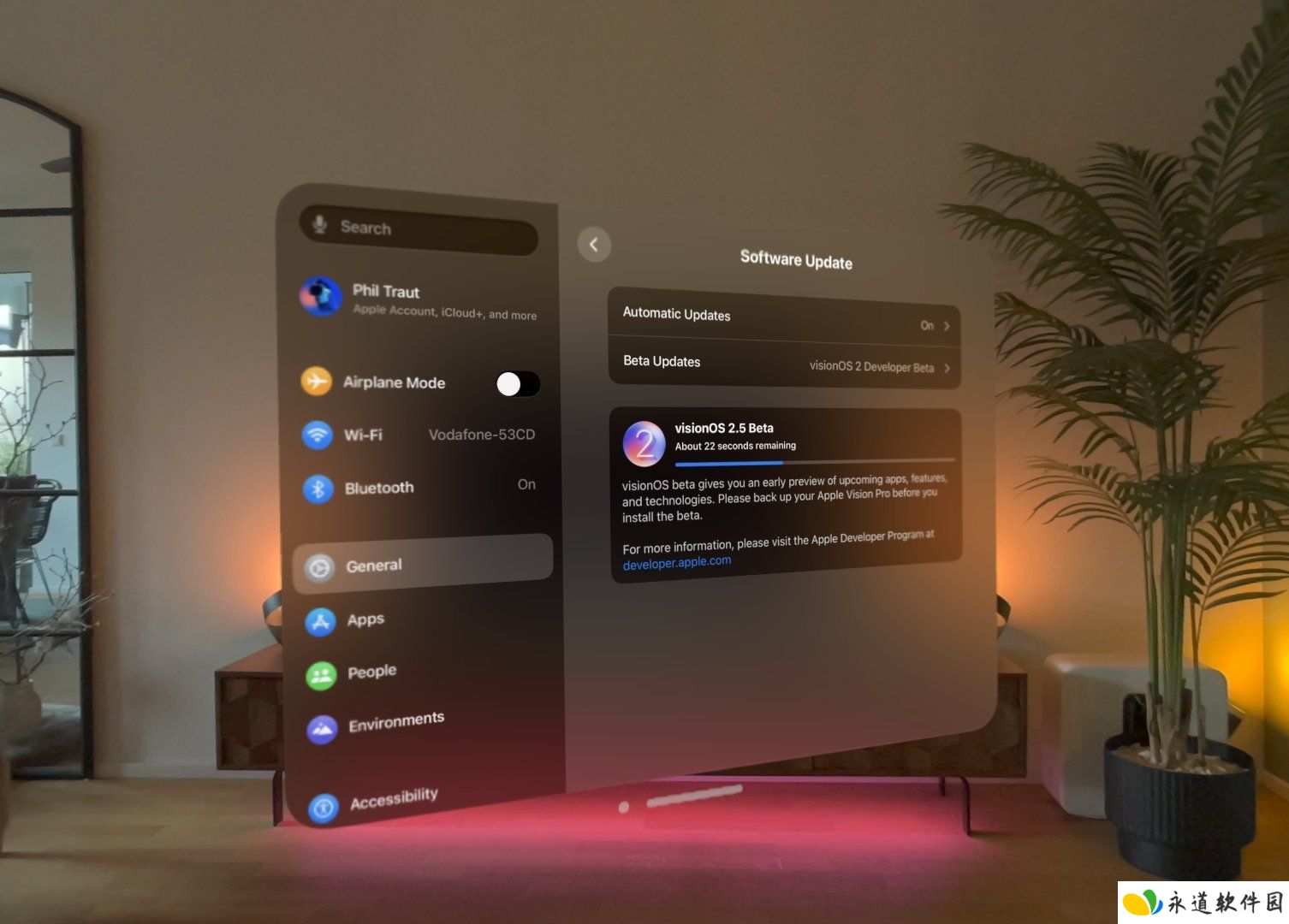 苹果目前未披露具体功能改进,可能聚焦于性能优化和漏洞修复,为后续重大版本(如 visionOS 3.0)做准备。开发者可通过 Apple Developer 网站下载测试版,内部版本号为 22O5442g。