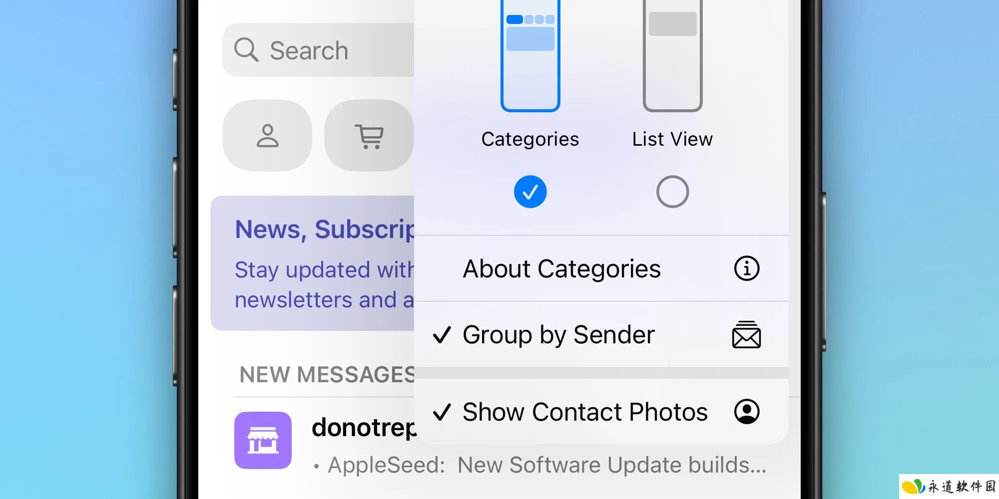 此前用户仅能通过右上角三点菜单关闭分类视图,如今该菜单新增了关闭联系人头像和 "按发件人分组" 摘要视图的选项。