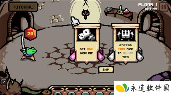 -每次进入新的一关,你都会随机获得不同的骰子。这些骰子将是你与怪物战斗的关键。你需要巧妙地将这些骰子放置在棋盘上,运用它们的能力来应对即将到来的敌人。合理布局,运筹帷幄,才能在危机四伏的地牢中占得先机。