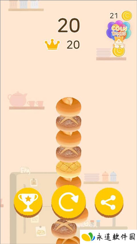 3、抓准时机添加面包,确保猫咪稳定站立,考验玩家的操作技巧。