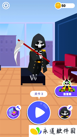 随着游戏的进行,玩家可以解锁不同风格的死神形象,比如西装革履的“商务死神”、穿着斗篷的“传统死神”,甚至可以变成幽默搞笑的卡通死神,为游戏增添更多趣味性。
