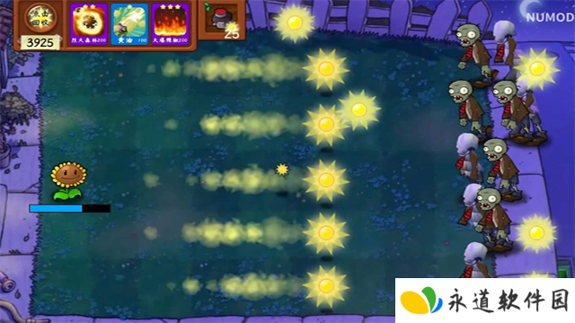 4、中期的话,收集足够阳光,这样才能应付后面的僵尸大军。
