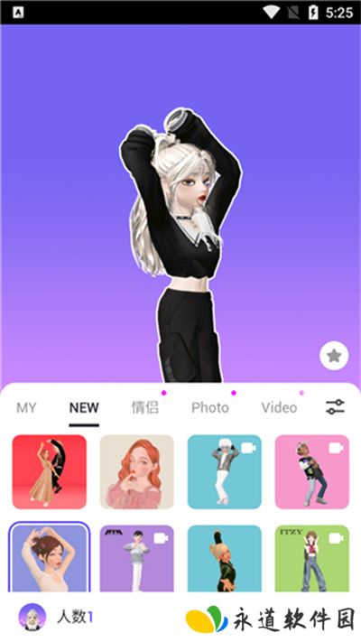 6. 来到照相广场后,可以根据需要选择合适的姿势。如果是多人合照,选择对应人数的姿势。