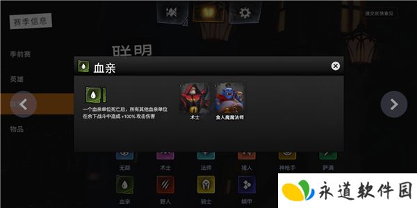 游戏内包含丰富的联盟与羁绊机制,如血亲、神枪手、德鲁伊、术士、猎人、刺客等,玩家可通过合理搭配英雄阵容,激活强力加成效果,打造专属战术体系。