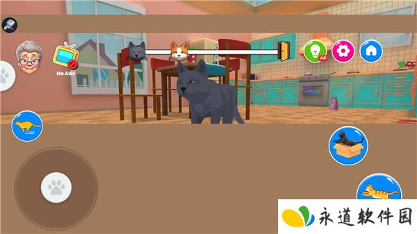 2、右边的按钮点击后可以进行跳跃,帮助你跳上各种位置进行捣蛋。