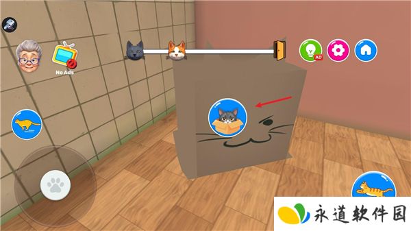 3、当我们靠近物品后就会出现猫爪按钮,点击即可推动它。
