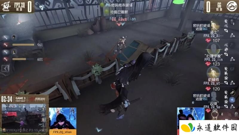 在WBG战队与成都Wolves战队的第二局下半局比赛中,Wolves_ChoAi“跛脚羊”凭借失常技能,开局通过贴板笼追击机械师并快速击倒,随后在守椅战中预判机械师放娃娃成功将其再次击倒,最终在双人开门战中拿下四抓。